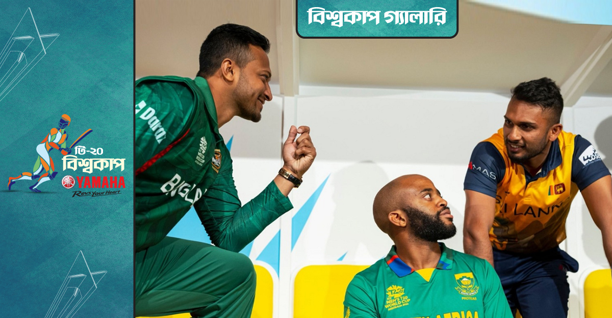 যেখানে দুই ভাগে আট-আট ষোলজন অধিনায়ক এলেন এই ফটোসেশনে। বাংলাদেশ অধিনায়ক সাকিব আল হাসানের দেখা মিলল দ্বিতীয় ধাপে। অস্ট্রেলিয়া, ইংল্যান্ড, নিউজিল্যান্ড, শ্রীলঙ্কা, আফগানিস্তান, নেদারল্যান্ডস, নামিবিয়া ও আরব আমিরাতের অধিনায়করা আসেন প্রথম ধাপে।