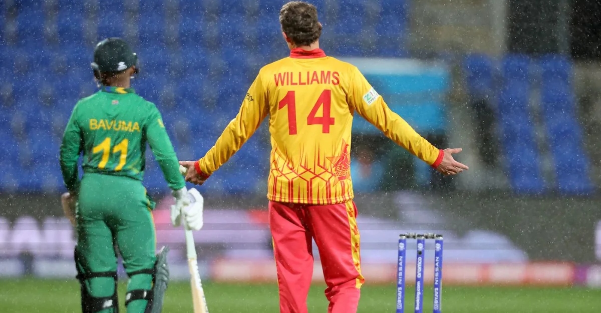 ৮০ রানের লক্ষ্যে ব্যাট করতে নেমে প্রথম ২ ওভারেই ৪০ রান করে দক্ষিণ আফ্রিকা। কিন্তু এর পরপরই মাঠে হানা দেয় বৃষ্টি। বৃষ্টি কিছুটা কমলে আরও এক ওভার মাঠে গড়ায়। সিকান্দার রাজার সেই ওভারে ১১ রান নেয় দক্ষিণ আফ্রিকা। এরপর আবার বৃষ্টি নামলে পরিত্যক্ত হয় খেলা।