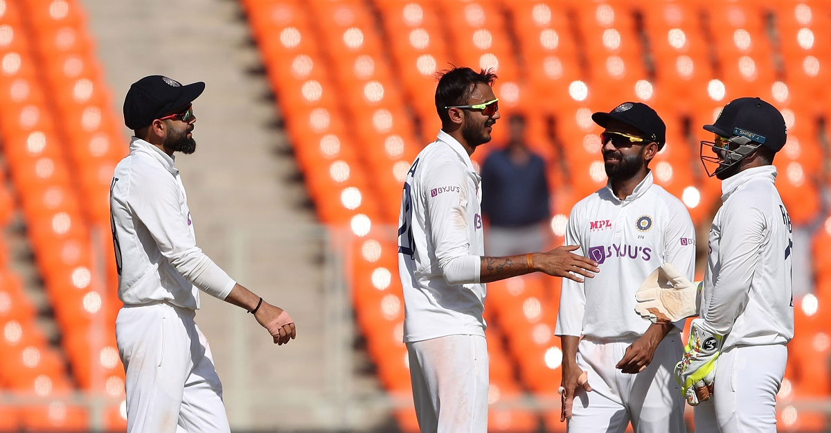 ২৬ ওভার বল করে ৬৮ রান দিয়ে ৪ উইকেট তুলে নেন অক্ষর প্যাটেল। আরেক স্পিনার রবিচন্দ্রন অশ্বিন নিয়েছেন তিন উইকেট। প্রথম দিনের শেষদিকে খেলতে নেমে ২৪ রানেই এক উইকেট হারিয়ে ফেলেছে ইংল্যান্ড।