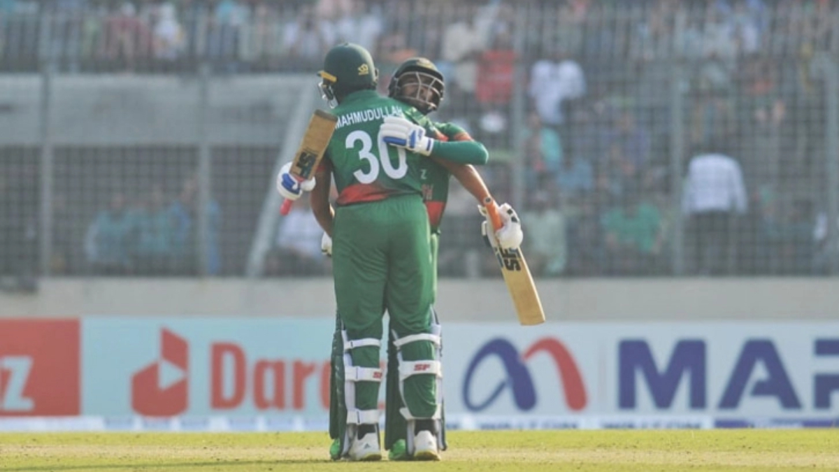 সিরিজ জয়ের মিশনে নেমে বুধবার ১০০ রান তোলার আগেই নেই ৬ উইকেট। বাংলাদেশ তখন ঘোর বিপদে। তখনই ত্রাতা হয়ে এলেন মেহেদি হাসান মিরাজ ও মাহমুদউল্লাহ রিয়াদ। এই দুজনের ব্যাটে চড়েই বিপর্যয় সামাল দিয়েছে লিটন দাসের দল।