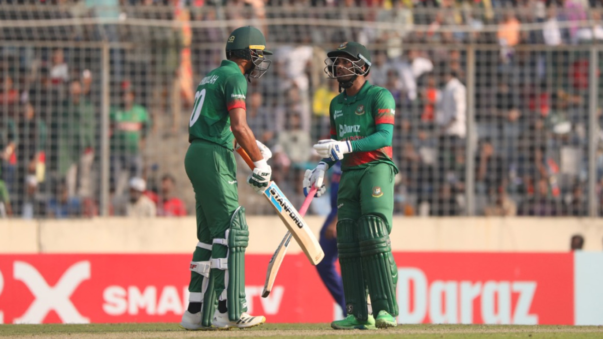 বাংলাদেশ: ৫০ ওভারে ২৭১/৭ (এনামুল ১১, লিটন ৭, শান্ত ২১, সাকিব ৮, মুশফিক ১২, মাহমুদউল্লাহ ৭৭, আফিফ ০, মিরাজ ১০০*, নাসুম ১৮*; সিরাজ ২/৭২, উমরান ২/৫৮, ওয়াশিংটন ৩/৩৭)