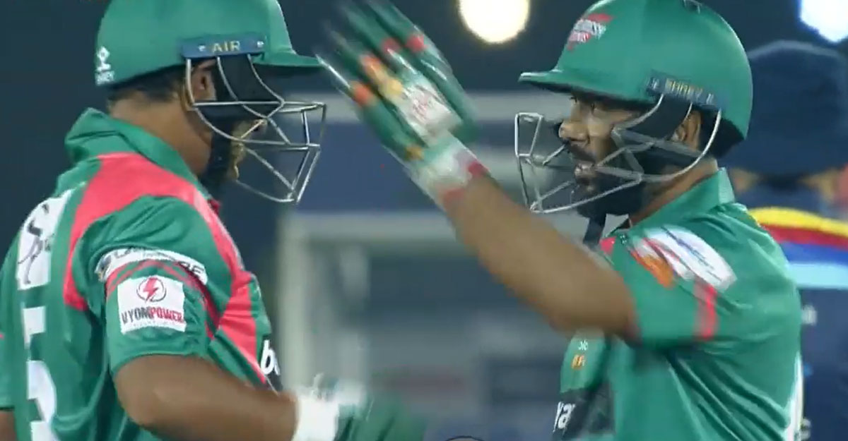 এরপর মোহাম্মদ শরীফের ঝড়ো ইনিংসের ওপর ভর করে ১৫০ ছাড়ায় বাংলাদেশ লেজেন্ডস। ৩ ছক্কায় ১৩ বলে ২৬ রান করেন শরীফ। নির্ধারিত ২০ ওভার শেষে বাংলাদেশ ৭ উইকেট হারিয়ে তুলে ১৬৯ রান।
