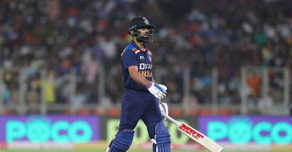পাঁচ বল খেললেও কোনো রান করতে পারেননি তিনি। আদিল রশিদের বলে ক্রিস জর্ডানের হাতে ক্যাচ তুলে দিয়ে আউট হন কোহলি। এরপর দলের হাল ধরেন ঋষভ পান্ত ও শ্রেয়াস আয়ার।