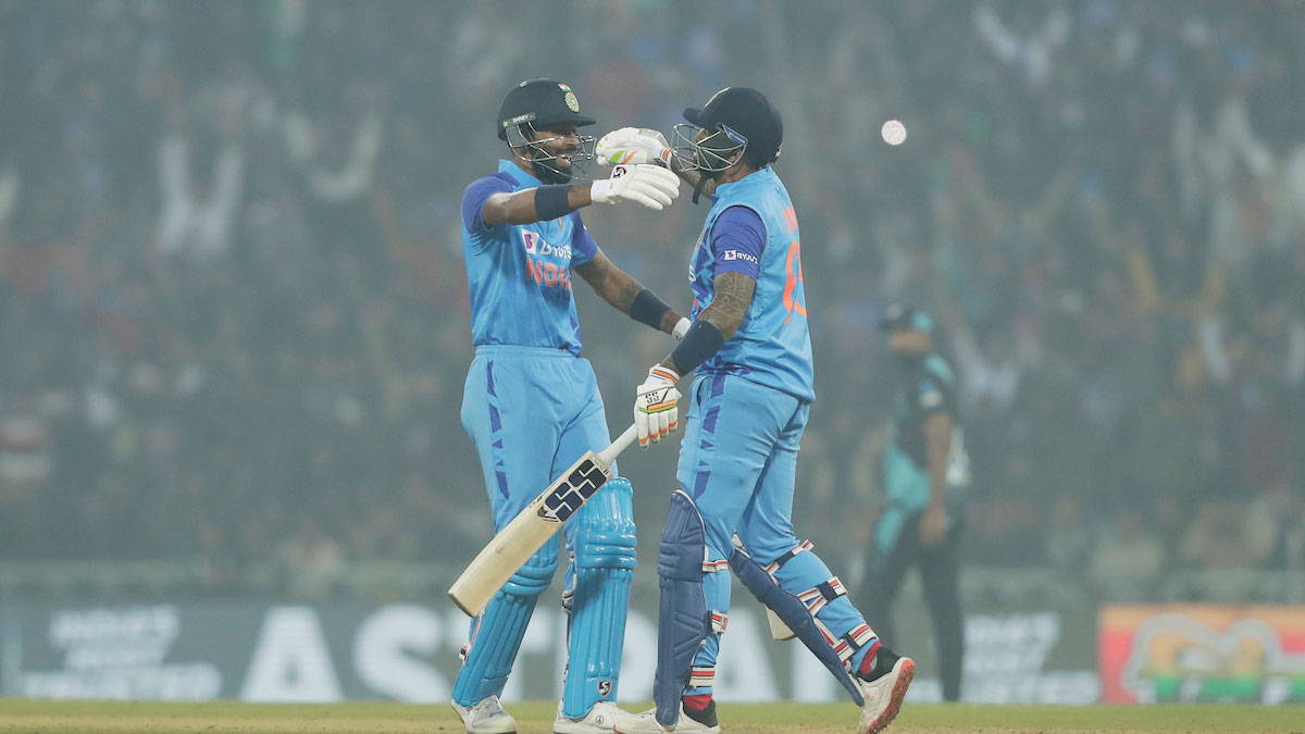 জবাবে সূর্যকুমার যাদব এবং অধিনায়ক হার্দিকের দায়িত্বশীল ইনিংস ভারতকে জয়ের বন্দরে পৌঁছে দেয়। সূর্য একটি চারের সাহায্যে ৩১ বলে ২৬ রান করে অপরাজিত থাকেন। অধিনায়ক হার্দিকের ব্যাট থেকে আসে অপরাজিত ১৫ রানের ইনিংস।