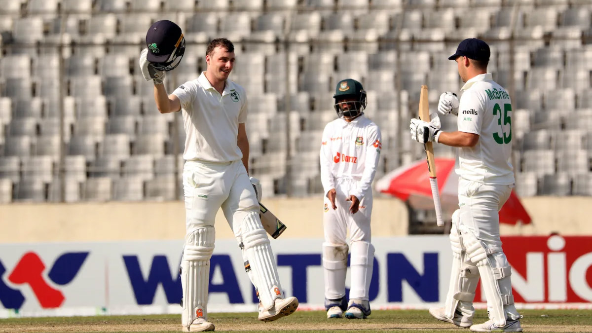 প্রথম ইনিংসের মতো আরেকটি ফিফটি করেন হ্যারি টেক্টর। স্মরণীয় সেঞ্চুরিতে অভিষেক রাঙান টাকার। বোলিংয়ে ৬ উইকেট শিকার করা অ্যান্ডি ম্যাকব্রাইন ব্যাটিংয়ে আটে নেমে দিন শেষে অপরাজিত ৭১ রানে। ২ উইকেট বাকি রেখে আইরিশদের লিড এখন ১৩১ রানের।