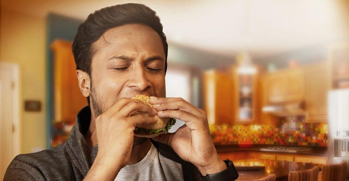 নিজের ফেসবুক পেজে একটি ছবি শেয়ার করেছেন সাকিব। যেখানে একটি বার্গারে কামড় দিতে দেখা যাচ্ছে তাকে। তবে ছবি দেখে বোঝার উপায় নেই এটি কোনও বিজ্ঞাপন চিত্র কি না। সেই ছবির সঙ্গে সাকিব একটি লেখা জুড়ে দিয়েছেন। যেখানে প্রশ্ন ছুড়ে দিয়ে সাকিব লিখেছেন, ‘ইদানীং যা-ই খাচ্ছি সবই মজা লাগছে! কেন বলুন তো?’