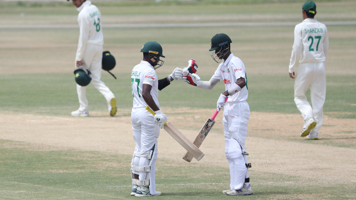 প্রথম ইনিংসে পাকিস্তানের চেয়ে ২৭১ রানে পিছিয়ে থেকে দ্বিতীয় ইনিংসে ব্যাট করতে নামে টাইগার যুবারা। আজ (২ মে) তৃতীয় দিন শেষেও শাহরিয়ার সাকিবের দল পিছিয়ে আছে ১০৫ রানে। প্রথম ইনিংসের ন্যায় এবারও সফরকারীদের বিপক্ষে বাংলাদেশের শুরুটা ভালো হয়নি। ওপেনার মাজহারুল ইসলাম রানের খাতা খোলার আগেই ফিরে যান। তবে রান তোলার চেষ্টা করেছেন পরবর্তী ব্যাটাররা। ওপেনার আশিকুর রহমান শিবলি ৭৯ রান এবং ২৬ রান এসেছে আদিল বিন সাদিকের ব্যাট থেকে।