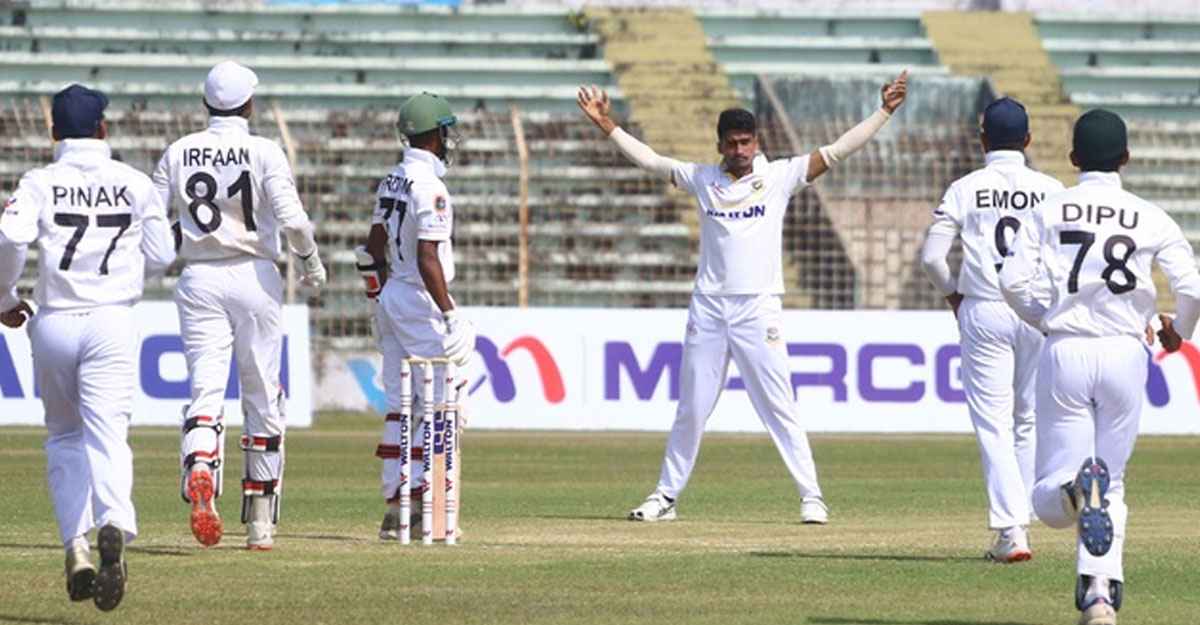 এরপর কিছুক্ষণ পর ১১ বলে ৩ রান করে রানার বলেই সাজঘরে ফেরত যান প্রীতম কুমার। তাইজুল ইসলামকে বোল্ড করে আউট করেন ইরফান হোসেন। একইভাবে শফিকুল ইসলামকে সাজঘরের পথ দেখান রানা।