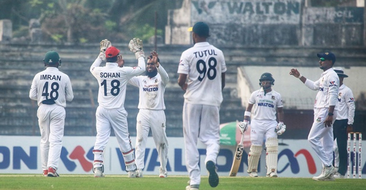 ম্যাচের চতুর্থ দিনে বৃহস্পতিবার সকালেই ফেরেন অলক কাপালি (২৩)। তবে অন্য প্রান্তে জাকির লড়াই হার মানে। ততক্ষণ দল ফলোঅন লজ্জা কাটিয়ে ওঠে। লিডও পায় ৬৮ রানের। খুলনার হয়ে ৪ উইকেট নেন আব্দুল হালিম। মইনুল ইসলাম সোহেল শিকার করেন ৩ উইকেট।