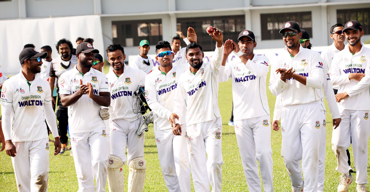 নাসির হোসেন সেঞ্চুরি করলেন প্রথম ইনিংসে, বল হাতেও পেলেন চার উইকেট। ঢাকা বিভাগের বিপক্ষে ম্যাচটা রংপুরের এই ক্রিকেটারই করে রেখেছিলেন। কিন্তু প্রথম ইনিংসে চার উইকেট নেওয়ার পর দ্বিতীয় ইনিংসে ছয় উইকেট নিয়ে সেসব ম্লান করে দিয়ে ঢাকাকে ৮০ রানের জয় এনে দিয়েছেন স্পিনার নাজমুল ইসলাম অপু।
