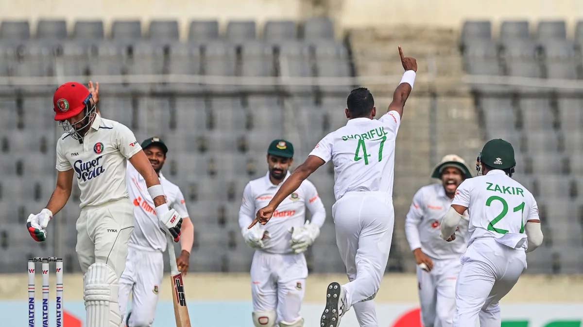 অসম্ভব লক্ষ্য তাড়ায় ইনিংসের প্রথম বলেই উইকেট হারায় সফরকারীরা। শরিফুল ইসলামের বলে এলবিডব্লিউ হয়ে সাজঘরে ফেরেন আফগান ওপেনার ইব্রাহিম জাদরান। ফুল লেংথের ডেলিভারি ব্যাটে লাগাতে পারেননি। বল গিয়ে আঘাত হানে প্যাডে। জোরাল আবেদনে সাড়া দিতে দেরি করলেন না আম্পায়ার। রিভিউ নিয়েও শেষ রক্ষা হয়নি।