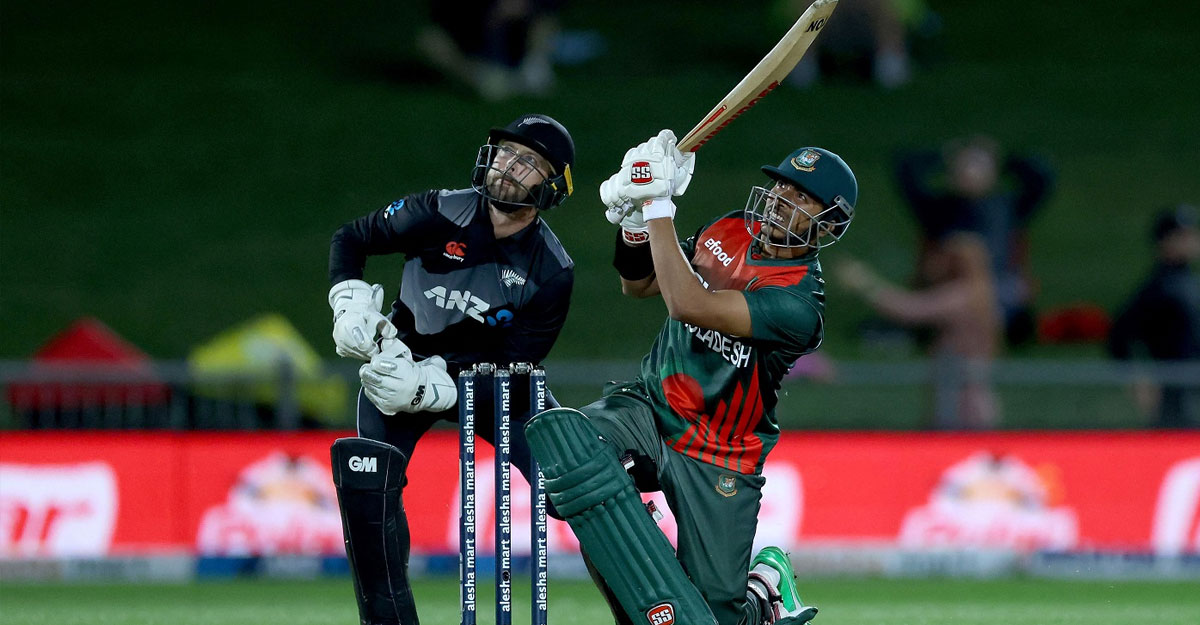 ১০ ওভারের লড়াই। তাই শুরু থেকেই কিউই ঝড়! প্রথম ওভারে নাসুম আহমেদের বলে ছক্কা। পরের ওভারে তাসকিন আহমেদের বলেও একই দৃশ্য। মার্টিন গাপটিলের ছক্কা ঝড়ে শুরু নিউজিল্যান্ডের দাপট। ৩ ওভারের পাওয়ার প্লেতে নিউজিল্যান্ড বিনা উইকেটে ৪৩ রান।