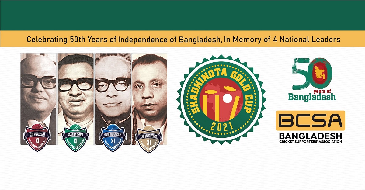 জাতীয় চার নেতা- ক্যাপ্টেন (অবঃ) মোহাম্মদ মনসুর আলী (১৯১৯-১৯৭৫), তাজউদ্দিন আহমেদ (১৯২৫-১৯৭৫), সৈয়দ নজরুল ইসলাম (১৯২৫-১৯৭৫) ও আবুল হাসনাত মোহাম্মদ কামরুজ্জামান (১৯২৬-১৯৭৫)- এই চারটি নাম বাংলাদেশের ইতিহাসে উজ্জল নক্ষত্রসম। তাঁদেরকে ছাড়া স্বাধীন বাংলাদেশের ইতিহাস লেখা হয়তো সম্ভব না। জাতির জনক বঙ্গবন্ধু শেখ মুজিবুর রহমানের সাথে কাঁধে কাঁধ মিলিয়ে ১৯৭১ এ স্বাধীন বাংলাদেশের জন্য অপরিসীম ভূমিকা রেখেছেন এই চার নেতা। তাঁদের অবদানের প্রতি শ্রদ্ধাশীল বিসিএসএ স্বাধীনতার সুবর্ণজয়ন্তীতে তাঁদের স্মরণে আয়োজিত এই ক্রিকেট টুর্নামেন্ট। মাঠের লড়াইয়ে এই স্বাধীনতা গোল্ড কাপে বিসিএসএ মেম্বাররা অংশগ্রহণ করেন।