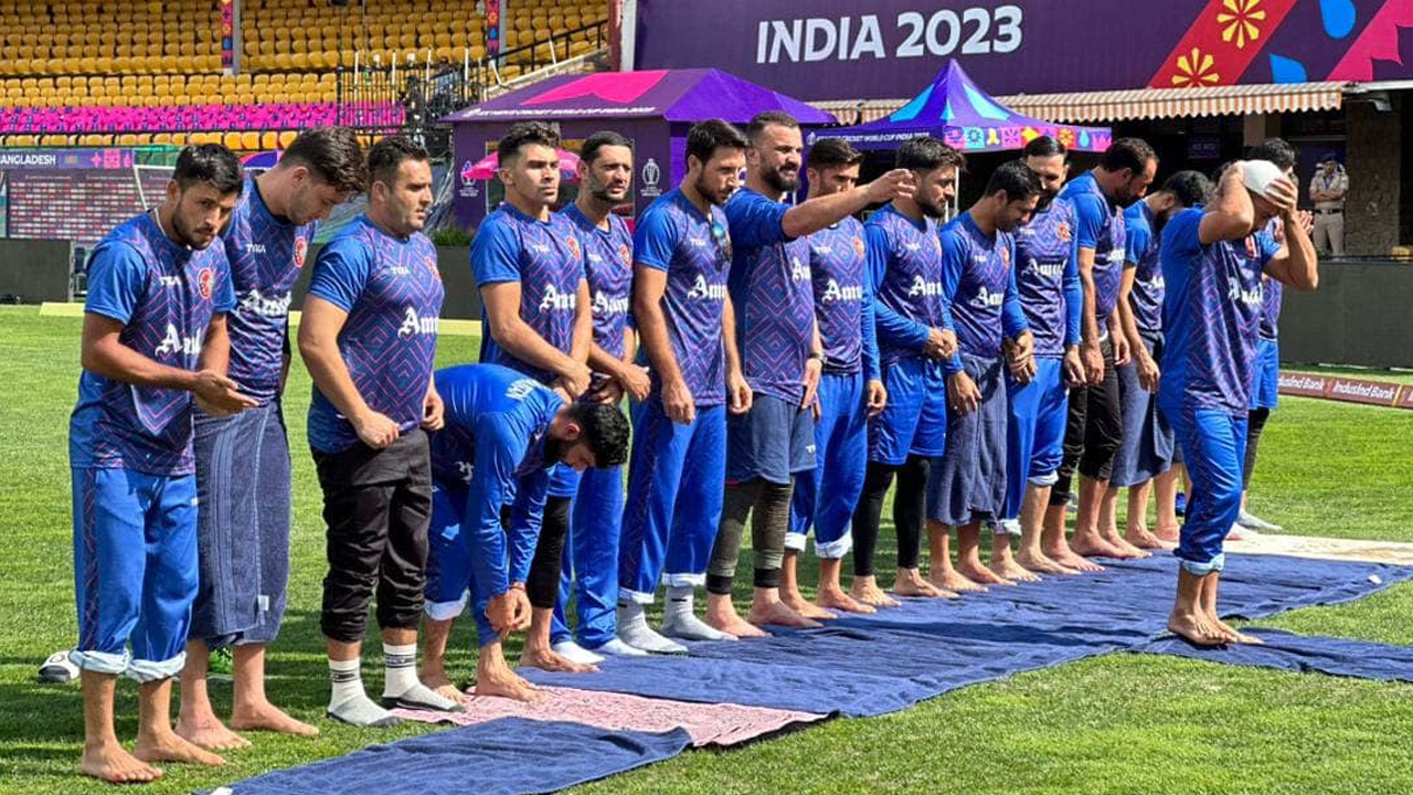 ক্রিকেটারদের নামাজ পড়ার ছবি আফগান বোর্ডের পেইজে শেয়ার করে ক্যাপশনে লেখা হয়েছে, আগামীকাল বাংলাদেশের বিপক্ষে বিশ্বকাপ ম্যাচের প্রস্তুতির জন্য আজ শুক্রবার নামাজের পর অনুশীলন সেরেছেন আফগান বীরেরা। আফগান বীর, সবার অহংকার।