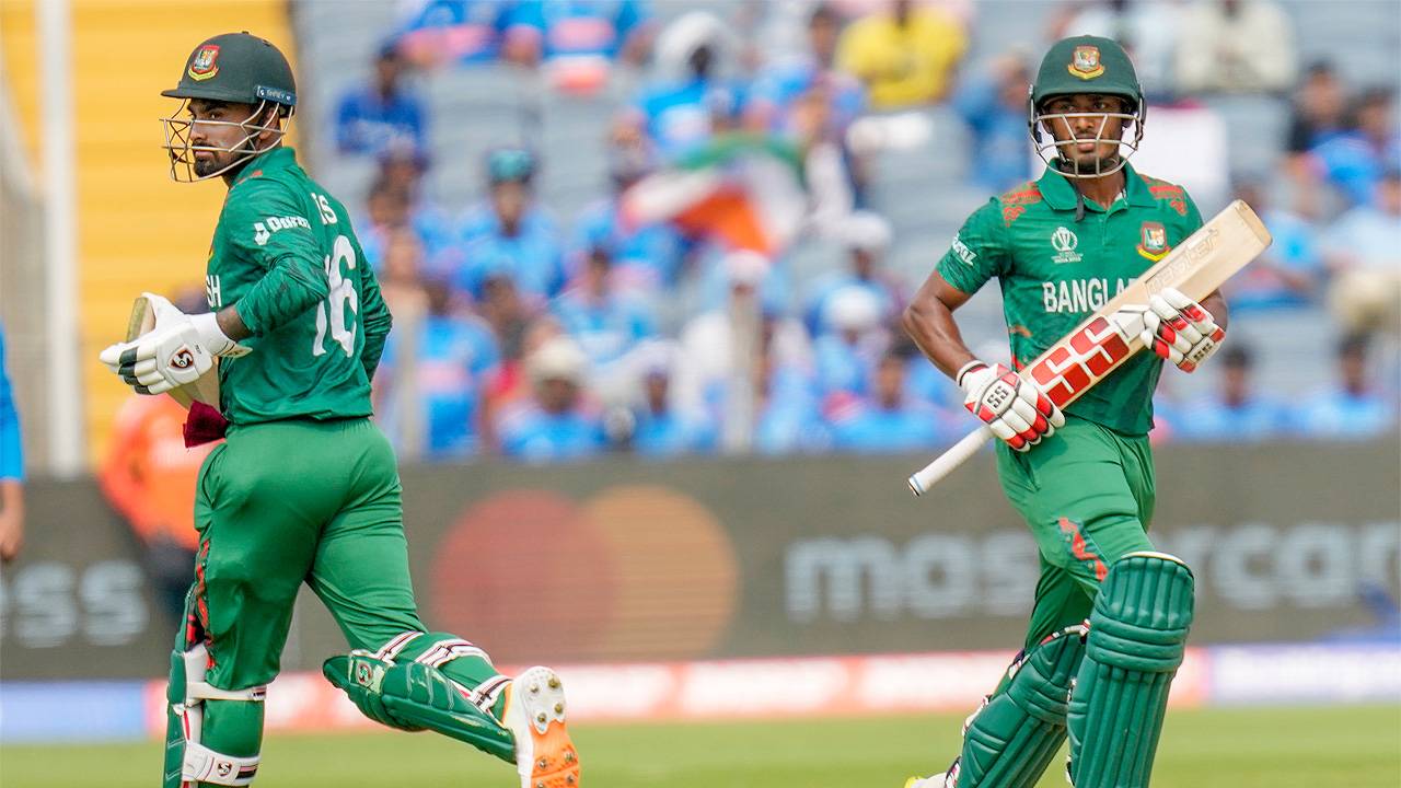 বিশ্বকাপে বাংলাদেশের পক্ষে ওপেনিংয়ে সর্বোচ্চ রানের জুটি (৯৩ রান) আসে লিটন ও তামিমের ব্যাট থেকে। দুজনের জুটি ভেঙে দেয় ৯৯ সালে পাকিস্তানের বিপক্ষে গড়া ৬৯ রানের জুটি। রানের সন্ধানে থাকা তানজিদ তামিম খেলেছেন দুর্দান্ত এক ইনিংস। মারকুটে ব্যাটিং উপহার দিয়ে তুলে নেন ফিফটি। ৫ চার আর ৩ ছয়ে ৪১ বলে আসে তার অর্ধশতক।
