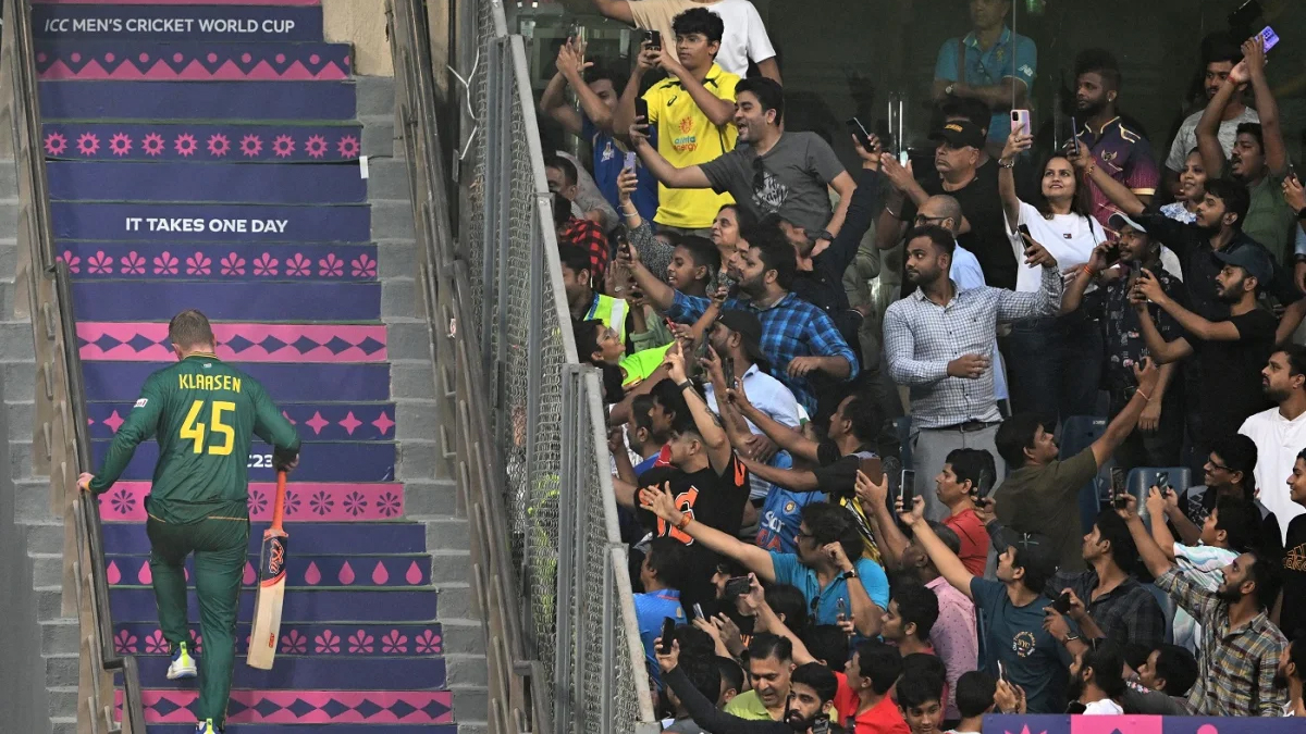 ওয়াংখেড়েতে টস হেরে ব্যাট করতে নেমে নির্ধারিত ৫০ ওভারে ৭ উইকেট হারিয়ে ৩৯৯ রান তোলে দক্ষিণ আফ্রিকা। সর্বোচ্চ ১০৯ রান এসেছে ক্লাসেনের ব্যাট থেকে। জবাবে ২২ ওভারে ১৭০ রানে অল আউট হয় ইংল্যান্ড। ইংলিশদের হয়ে সর্বোচ্চ ৪৩ রান করে অপরাজিত ছিলেন মার্ক উড।