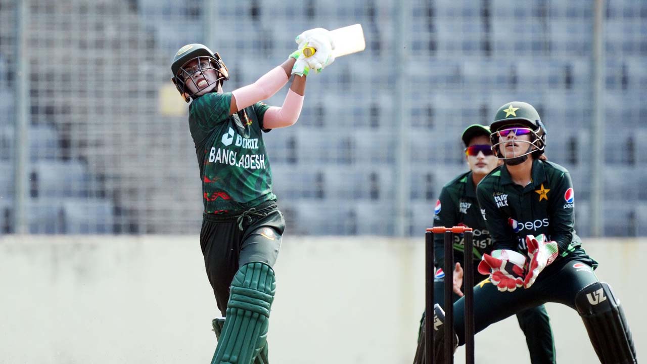 এদিন মামুলি লক্ষ্যে ব্যাট করতে নেমে প্রথম থেকেই দেখেশুনে শুরু করে পাক নারীরা। তবে দলীয় ১৮ রানে ফিরে যান ওপেনার শাদাব শামস। এরপর সিদরা আমিনকে ফিরিয়ে আবারো পাক শিবিরে আঘাত হানে টাইগাররা। পরে দলীয় ২৭ রানে ফিরে যান আরেক ব্যাটার বিসমাহ মারুফ।