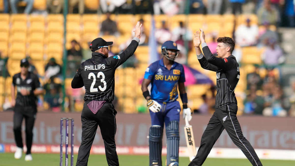 ইনিংসের দ্বিতীয় ওভারেই ইনফর্ম পাথুম নিশাঙ্কাকে সাজঘরে ফিরিয়ে লঙ্কান শিবিরে প্রথম আঘাত হানেন টিম সাউদি। আসর জুড়ে দুর্দান্ত ব্যাটিং করা এই ওপেনারের ব্যাট থেকে এসেছে ২ রান। নেতৃত্ব পাওয়ার পর নিজের স্বভাবজাত ব্যাটিংটাই যেন ভুলে বসেছেন কুশল মেন্ডিস। ব্যর্থতার বৃত্ত ভাঙতে পারেননি আজও।তিনে নেমে সুপার ফ্লপ লঙ্কান অধিনায়ক। ৭ বলে ৬ রান করে ট্রেন্ট বোল্টের বলে রাচিন রবীন্দ্রের হাতে ক্যাচ দিয়েছেন তিনি।