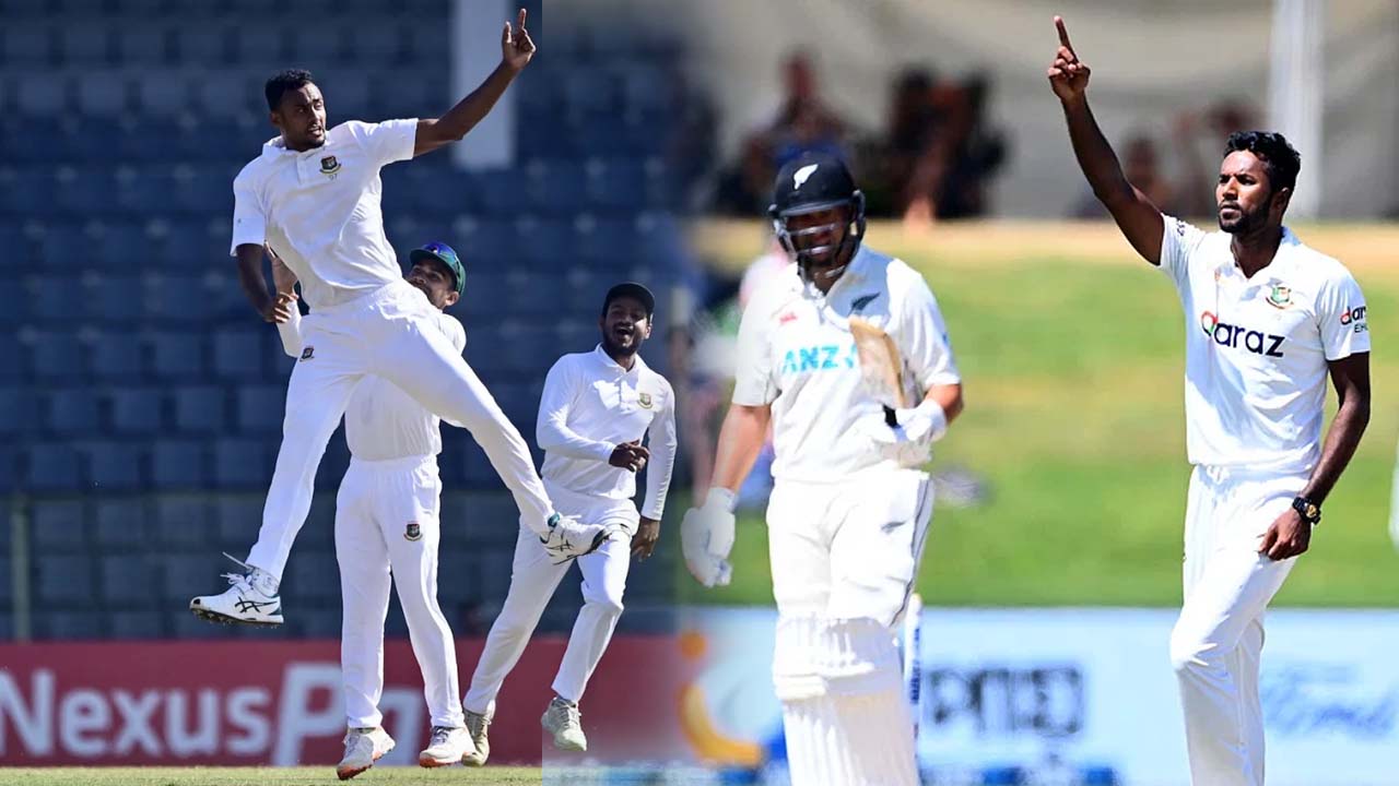নিজেদের দ্বিতীয় ইনিংসের ব্যাটিং শেষে আজ কিউইদের সামনে ৩৩২ রানের পাহাড়সম টার্গেট ছুড়ে দেয় বাংলাদেশ। এর আগে এতবড় রান তাড়া করে জয়ের নজির নেই নিউজিল্যান্ডের। বড় লক্ষ্য তাড়ায় এদিন শুরুতেই হোঁচট খায় কিউইরা। ইনিংসের প্রথম ওভারেই বাংলাদেশকে দারুণ শুরু এনে দেন শরিফুল ইসলাম। এই বাঁহাতি পেসারের খাটো লেন্থের বলে খোঁচা দিয়ে উইকেটের পেছনে ধরা পড়েন টম লাথাম। ডাক খেয়ে এই ওপেনার সাজঘরে ফেরায় রানের খাতা খোলার আগেই উইকেট হারায় সফরকারীরা।