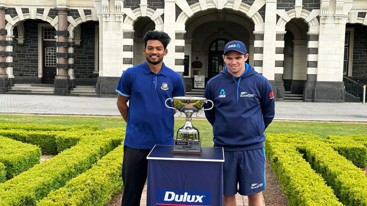 আগামী রোববার তিন ম্যাচ ওয়ানডে সিরিজের প্রথমটিতে স্বাগতিক নিউজিল্যান্ডের মুখোমুখি হবে বাংলাদেশ দল। তার আগে আজ শুক্রবার ট্রফি উন্মোচন অনুষ্ঠানে উপস্থিত ছিলেন বাংলাদেশ এবং নিউজিল্যান্ড অধিনায়ক। সিরিজ জয়ের ব্যাপারে আশাবাদের কথা জানিয়েছেন নাজমুল হোসেন শান্ত। পরে কিউই অধিনায়ক জানালেন, টাইগারদের বিপক্ষে চ্যালেঞ্জের কথা।