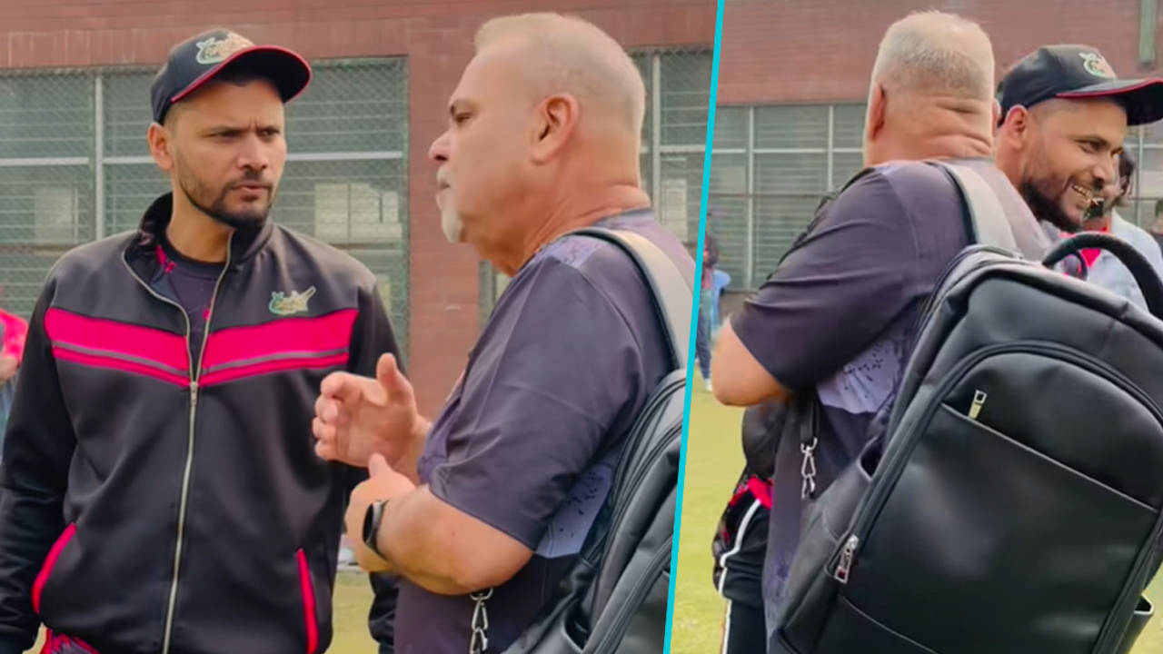 বলে রাখা ভালো— হোয়াটমোর এবার বিপিএলে ফরচুন বরিশালের টেকনিক্যাল ডিরেক্টর হিসেবে এসেছেন। মিরপুরে শিষ্যদের অনুশীলনে হাজির ছিলেন তিনি। একই জায়গায় পাশে অনুশীলন করছিল সিলেট স্ট্রাইকার্সও, যথারীতি ছিলেন মাশরাফিও। সেখানেই মূলত এই গুরু-শিষ্যের দেখা। পরক্ষণে পুরোনো গুরুকে দেখেই ছুটে গেলেন সিলেট অধিনায়ক।