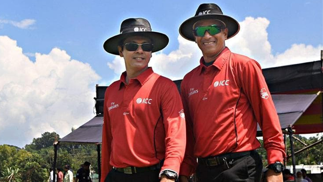 ফিল্ড আম্পায়ার হিসেবে সৈকত (বাঁয়ে), টিভি আম্পায়ারের দায়িত্বে মুকুল