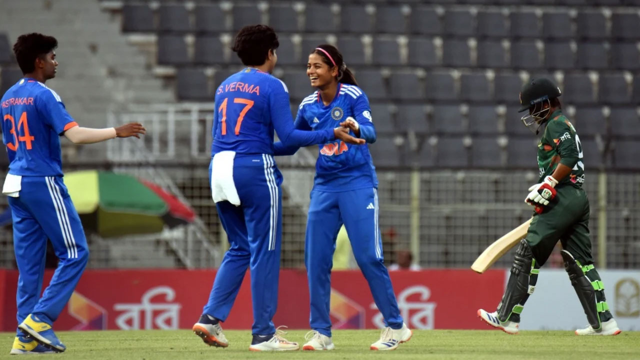 এর আগে ব্যাট করতে নেমে শুরুটা ভালো হয়নি ভারতের। ইনিংসের দ্বিতীয় ওভারেই সাজঘরে ফেরেন শেফালি ভার্মা। ২ রান করা এই ওপেনার শরিফা খাতুনের বলে রিতু মনির হাতে ক্যাচ দিয়েছেন। তবে তিনে নেমে রানের চাকা সচল রাখেন হেমলতা। তার ব্যাট থেকে এসেছে ১৪ বলে ২২ রান।