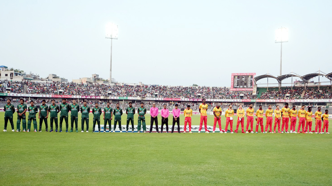 তবে মাঠে নামার আগেই শোকের ছাপ মিরপুরের মাঠে। গতকাল বৃহস্পতিবার চট্টগ্রামে পতেঙ্গায় বিমান বাহিনীর প্রশিক্ষণ বিমান বিধ্বস্ত হয়ে নিহত পাইলট আসিম জাওয়াদকে স্মরণ করে এক মিনিটের নীরবতা পালন করছে বাংলাদেশ এবং জিম্বাবুয়ে ক্রিকেট দল। বাংলাদেশ ক্রিকেট বোর্ড নিজেদের অফিসিয়াল ফেসবুক পেইজ এবং এক্স হ্যান্ডেলে বিষয়টি নিশ্চিত করেছে।