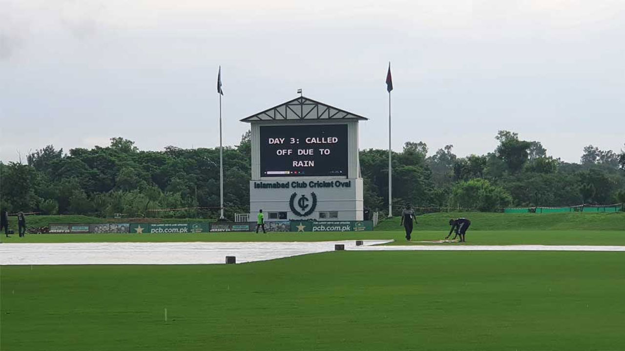 ইসলামাবাদ ক্লাব গ্রাউন্ডে আজ বৃহস্পতিবার তৃতীয় দিনে লাঞ্চ বিরতির পরেও বৃষ্টি ছিল। এরপর আর অপেক্ষা করেননি আম্পায়াররা। দিনের খেলা সমাপ্ত ঘোষণা করেন তারা।