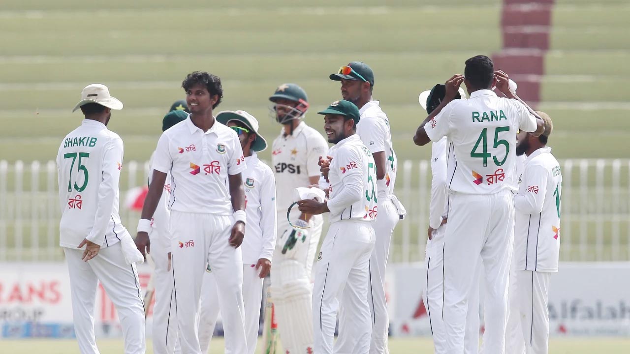 দিনের দ্বিতীয় ওভারেই পাকিস্তান অধিনায়ক শান মাসুদকে লিটন দাসের ক্যাচে পরিণত করলেন হাসান মাহমুদ। এরপর শূন্য রানে ফিরতে পারতেন বাবর আজমও। নিশ্চিত জীবন পেয়েও অবশ্য বেশিক্ষণ টিকতে পারলেন না। নাহিদ রানার শিকার হয়ে ফিরতে হলো। হাসান ও নাহিদের পর উইকেটের মিছিলে যোগ দিলেন সাকিব আল হাসানও। তার দখলে গেছে প্রথম ইনিংসের সেঞ্চুরিয়ান সৌদ শাকিলের উইকেট।