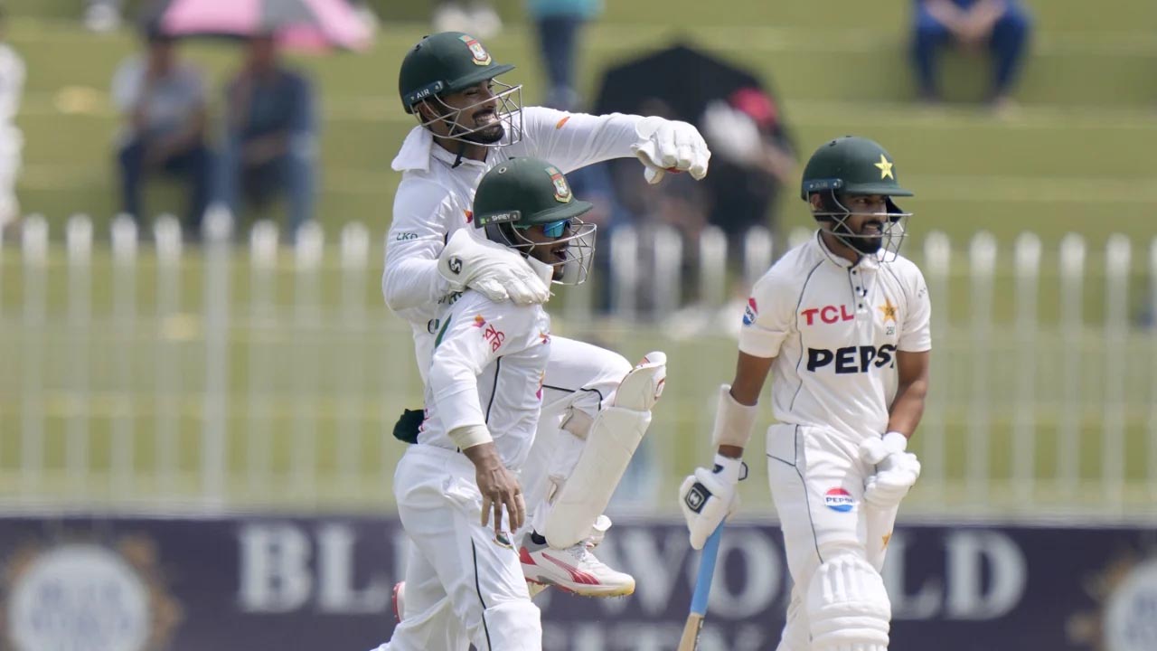 আজ শেষ দিনের দ্বিতীয় ওভারে ব্রেকথ্রু এনে দেন হাসান মাহমুদ। পাকিস্তান অধিনায়কের ব্যাটের কানা ছুঁয়ে বল জমা পড়েছিল লিটন দাসের গ্লাভসে। আম্পায়ার জোরাল আবেদনে সাড়া না দিলে রিভিউ নিয়ে সফল হয় বাংলাদেশ। তবে মাসুদের ক্যাচ নেওয়া লিটনই পরের ওভারে শরীফুলের বলে বাবর আজমের সহজ ক্যাচ ছেড়ে দেন।