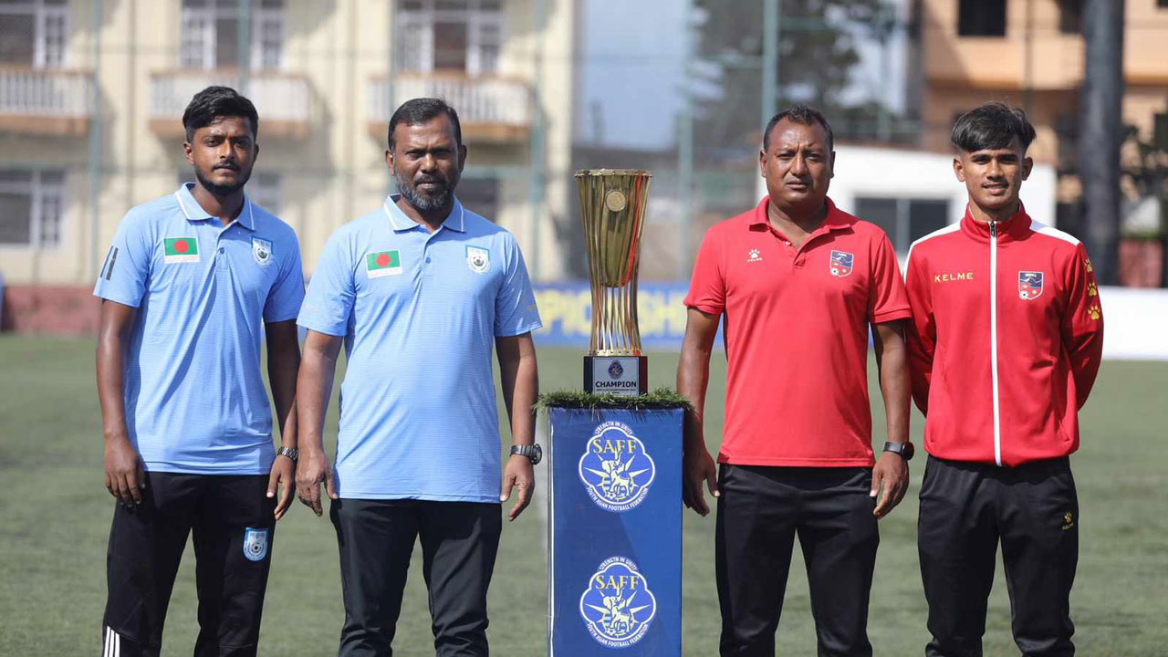 সাফ অনূর্ধ্ব-২০ টুর্নামেন্টে বাংলাদেশ চ্যাম্পিয়ন হওয়ার লক্ষ্যেই দেশ ছেড়েছিল। কাঠমান্ডুতে বাংলাদেশ দল শিরোপা স্পর্শ করতে আর এক ধাপ দূরে। আগামীকাল ফাইনালে স্বাগতিক নেপালকে হারালেই শিরোপা নিয়ে দেশে ফিরতে পারবে। বাংলাদেশ সময় পৌনে তিনটায় আনফা কমপ্লেক্সে ফাইনাল ম্যাচটি শুরু হবে।