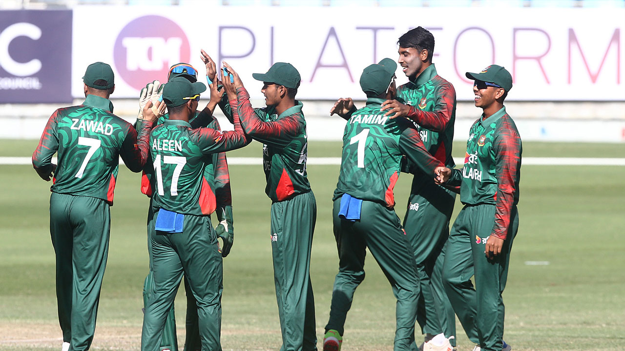 বাংলাদেশের হয়ে ২টি করে উইকেট শিকার করেছেন ফাহাদ, ইমন ও রিজন। তাছাড়া একটি করে উইকেট পেয়েছেন রাফি, তামিম ও সাদ।