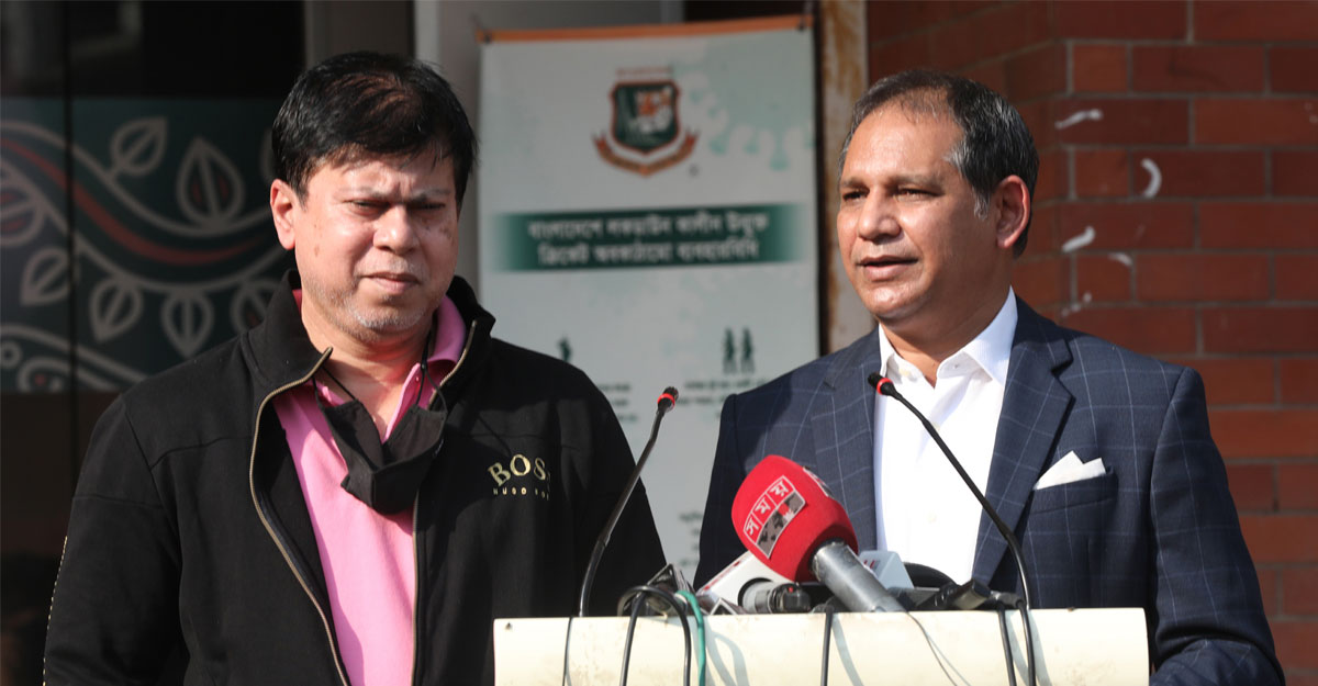 মিরপুরে গণমাধ্যমের মুখোমুখি দুই নির্বাচক মিনহাজুল আবেদীন ও হাবিবুল বাশার- ছবি: বিসিবি
