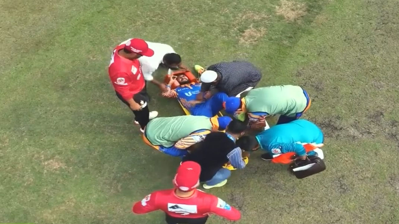 তবে বিপত্তি বাধে এরপরেই। মিরাজ উঠে দাঁড়াতে চেয়েও পারেননি। বরং পায়ের ব্যাথায় সেখানেই বসে পড়েন। তামিম ইকবাল-এবাদত সবাই এগিয়ে এসেছেন। মাঠে একপর্যায়ে ডেকে আনা হয় ফিজিও। কিন্তু সেখানেও সুস্থ করা যায়নি খুলনা টাইগার্সের অধিনায়ক মিরাজকে। শেষ পর্যন্ত ডেকে আনা হয় স্ট্রেচার। মিরাজকে মাঠ ছাড়তে হয়েছে স্ট্রেচারে চড়ে।