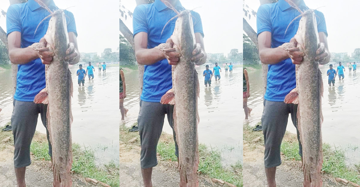 এরমধ্যে মাঠে তখন জল জমে হাঁটুপানি। তার মধ্যেই দেখা গেল অভূতপূর্ব এক দৃশ্য। নড়েচড়ে উঠল বড় সাইজের মাগুর মাছ! মাছ ধরতে ব্যস্ততা বেড়ে যায় মাঠ কর্মীদের। কিন্তু এমন প্রমাণ সাইজের মাছ ধরা তো আর সহজ নয়। ব্যস, মাঠ কর্মীরা নেমে পড়লেন কাপড় গুটিয়ে। আর ধরতেও পারলেন বিশাল সাইজের মাগুর মাছ।