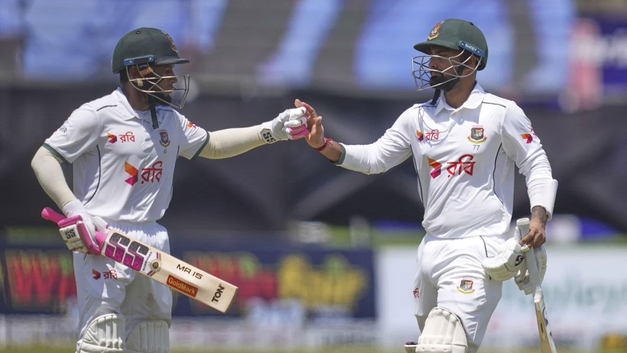 এর আগে দিনের শুরুতেই ফিরে যান নাজমুল হোসেন শান্ত। আগের দিন ১৩৬ রানে অপরাজিত থাকা শান্ত এদিন আর ১২ রন যোগ করে ১৪৮ রানে ফিরে যান। আসিথা ফার্নান্দো সকাল থেকে ভালো সুইং পাচ্ছিলেন। সেই সুইং ব্যবহার করে মিড অনে ক্যাচ বানান শান্তকে। ড্যাডি সেঞ্চুরি থেকে মাত্র ২ রান দূরে থামতে হয় বাংলাদেশ অধিনায়ককে।