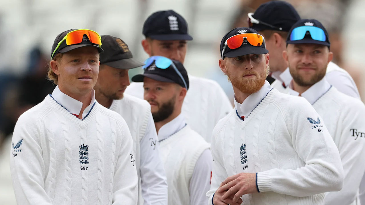 প্রথম টেস্টে ইংল্যান্ডের একাদশ: জ্যাক ক্রলি, বেন ডাকেট, অলিভার পোপ, জো রুট, হ্যারি ব্রুক, বেন স্টোকস (অধিনায়ক), জেমি স্মিথ (উইকেটকিপার), ক্রিস ওকস, ব্রাইডন কার্স, জশ টং, শোয়েব বাশির।