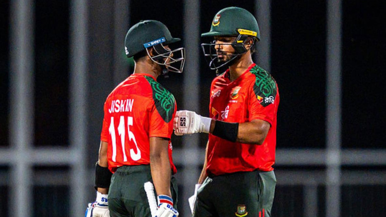 ভালো শুরু পেলেও ইনিংস বড় করতে পারেননি নাঈম শেখ। ১৮ বলে ২৫ রান করে এই ওপেনার বিদায় নিলে ভাঙে ৬০ রানের উদ্বোধনী জুটি। তবে ফিফটি পেয়েছেন জিশান। সবমিলিয়ে ৪৫ বলে ৭২ রান করেছেন এই তরুণ।