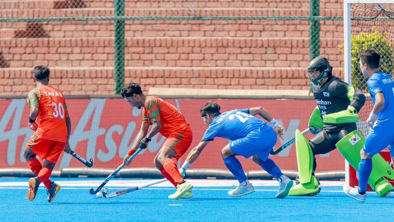 এশিয়া কাপ হকিতে গ্রুপ পর্বের শেষ ম্যাচে দক্ষিণ কোরিয়ার কাছে ৫-১ গোলে হেরেছে বাংলাদেশ। প্রথমার্ধেই ম্যাচ থেকে অনেকটা ছিটকে যায় বাংলাদেশ। কোরিয়া ৪-১ গোলে এগিয়ে ছিল। এরপর আরো একটি গোল করে তারা।