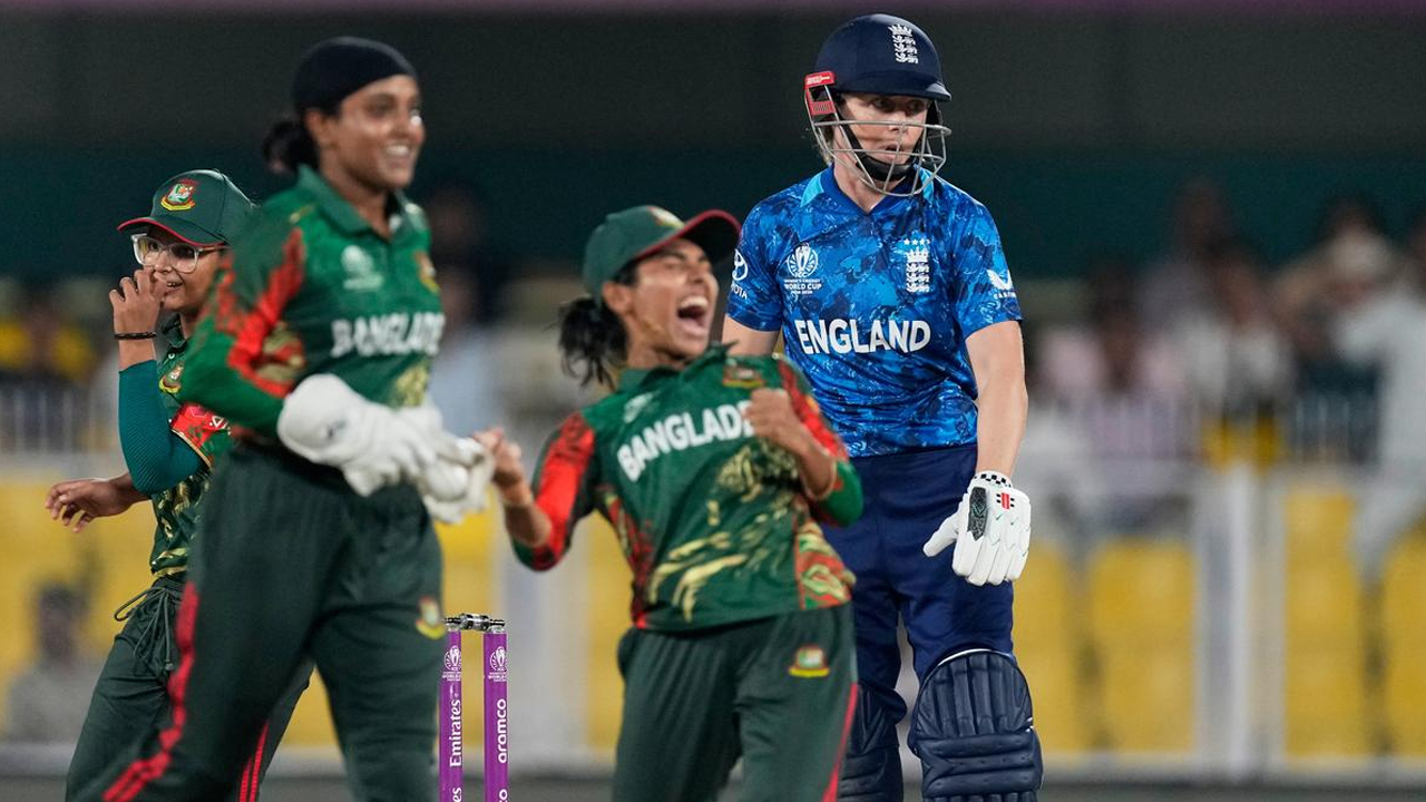 নারী ওয়ানডে বিশ্বকাপে ইংল্যান্ডের বিপক্ষে জয়ের সম্ভাবনা জাগিয়েও হেরেছে বাংলাদেশ। ম্যাচে দারুণ লড়াই করেও ৪ উইকেটে নিগার সুলতানা জ্যোতির দল হার দেখেছে। বাংলাদেশের স্পিন বিষে যখন ইংলিশ ব্যাটিং লাইনআপ ধসে পড়ে, একাই মোড় ঘুরিয়ে দিয়েছেন অভিজ্ঞ ব্যাটার হিদার নাইট। ১১১ বলে ৭৯ রানের হার না মানা ইনিংসে তিনি জয় নিশ্চিত করে মাঠ ছাড়েন।