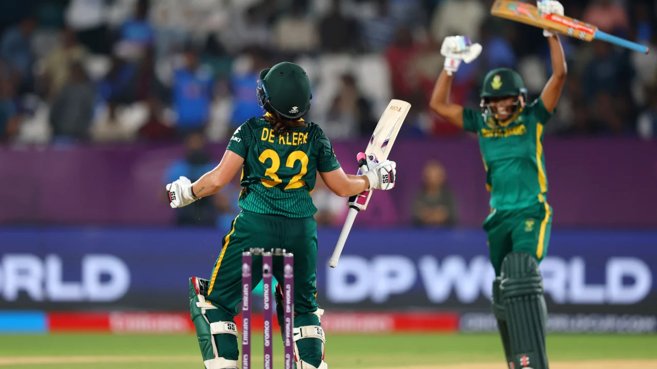 লক্ষ্য তাড়ায় নেমে শুরুতেই আগের ম্যাচের সেঞ্চুরিয়ান তাজমিন ব্রিটসকে (০) হারায় দক্ষিণ আফ্রিকা। অল্প সময়ের বিরতি দিয়ে ফিরেছেন সুনে লুস (৫), মারিজ্যান ক্যাপ (২০), অ্যানেকি বস (১) ও সিনালো জাফটা (১৪)। এরপর একপ্রান্ত আগলে রাখা অধিনায়ক লরা উলভার্ট ৬১ রানের জুটি গড়েন ট্রায়নের সঙ্গে। লরার বিদায়ে সেই জুটি ভাঙে, এর আগে তিনি ১১১ বলে ৮ চারের সাহায্যে ৭০ রানের ইনিংস খেলেন। ক্লো ট্রায়নের সঙ্গে এরপর ৬৯ রানের জুটি বাঁধেন আট নম্বরে নামা ডি ক্লার্ক। ট্রায়ন আউট হন ৪৯ রানে।