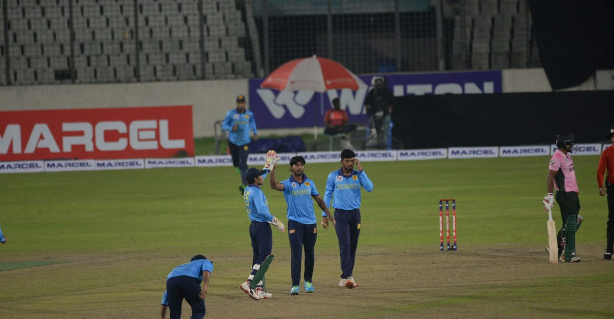 শান্ত ঝড়ো শুরুর আভাস দিলেও ইনিংস বড় করতে পারেননি, ১৭ বলে ২৭ রান করে আউট হন। আক্ষেপে পুড়তে হয়েছে মুনিমকে। ৪৩ রান করে রুয়েল মিয়ার বলে বোল্ড হন এবারের ডিপিএল দিয়ে আলোচনায় আসা এই ডানহাতি ব্যাটসম্যান। ওপেনিংয়ে জায়গা হারিয়ে মিডল অর্ডারে ব্যাট করতে নামা নাইম শেখ আউট হন ২৪ রান করে। তবে এক প্রান্ত আগলে রেখে রানের গতি বাড়ানোর কাজ করে যান অধিনায়ক মুশফিকুর রহিম।