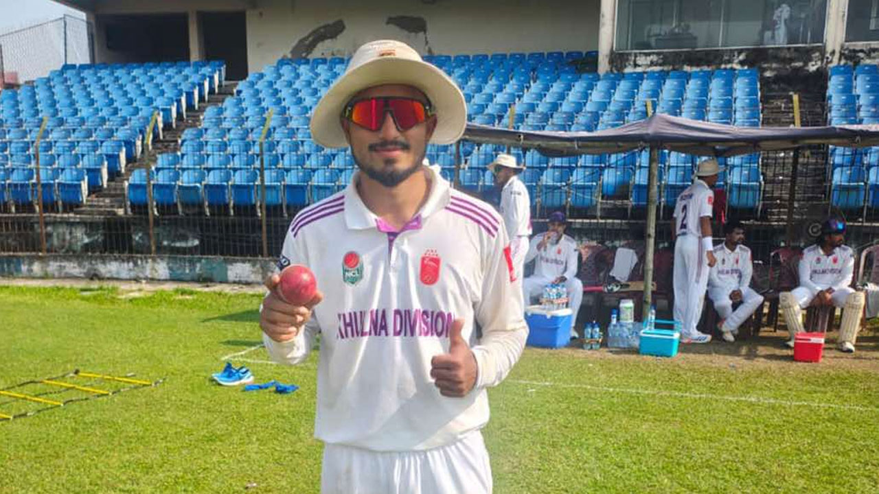 জাতীয় ক্রিকেট লিগের (এনসিএল) খুলনা বিভাগীয় স্টেডিয়ামে বল হাতে আজ আলো ছড়িয়েছেন আফিফ হোসেন ধ্রুব। এই স্পিনারের হ্যাটট্রিকে নিজেদের প্রথম ইনিংসে ৪১ ওভার ৩ বল খেলে ১২৬ রানে গুটিয়ে যায় বরিশাল। তাতে ফলোঅনে পড়ে আবারো ব্যাটিং করছে তারা।