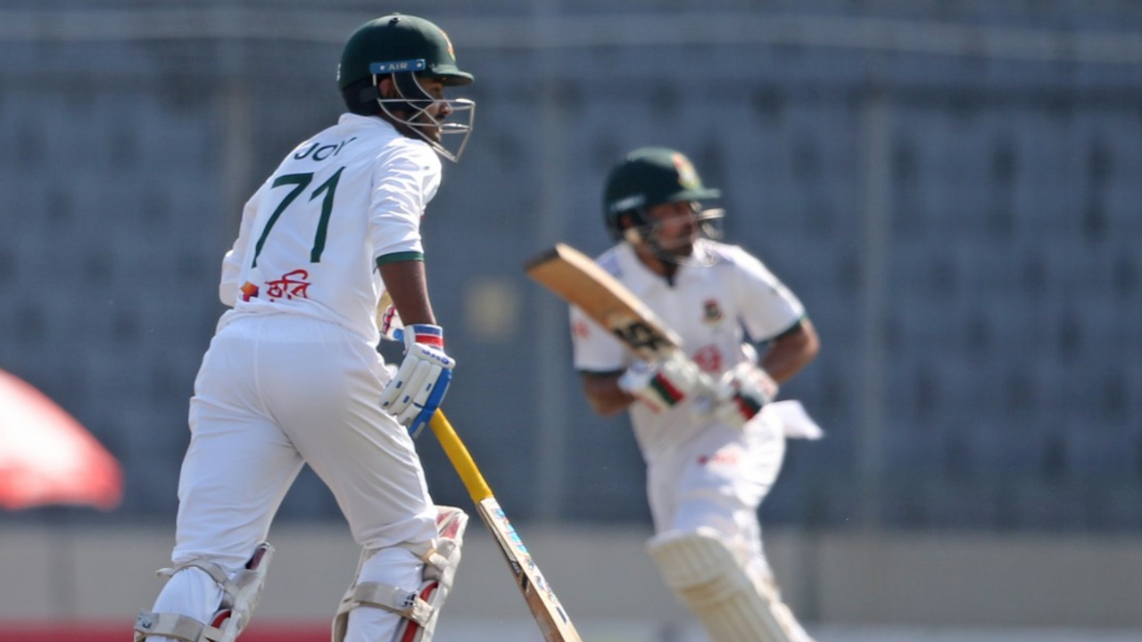 বাংলাদেশের উদ্বোধনী জুটি ভাঙে ৫২ রানে। এরপর জয় দেখে-শুনেই আগাচ্ছিলেন। কিন্তু অনেকক্ষণ ধরে বাউন্ডারি না পাওয়ায় হয়তো চাপ বাড়ছিল তার ওপর। সেই চাপ কাটাতে ম্যাকব্রাইনের বলে বড় শট খেলতে চেয়েছিলেন জয়। কিন্তু মিড-অফে তিনি ক্যাচ দিয়েছেন বদলি ফিল্ডার হিসেবে নামা ম্যাককার্থিকে। ফেরার আগে ডানহাতি এই ব্যাটার করেন ৩৪ রান। মধ্যাহ্ন বিরতিতে যাওয়ার সময় মুমিনুল হক ১৭ ও শততম টেস্ট খেলতে নামা মুশফিকুর রহিম ৩ রানে অপরাজিত আছেন।