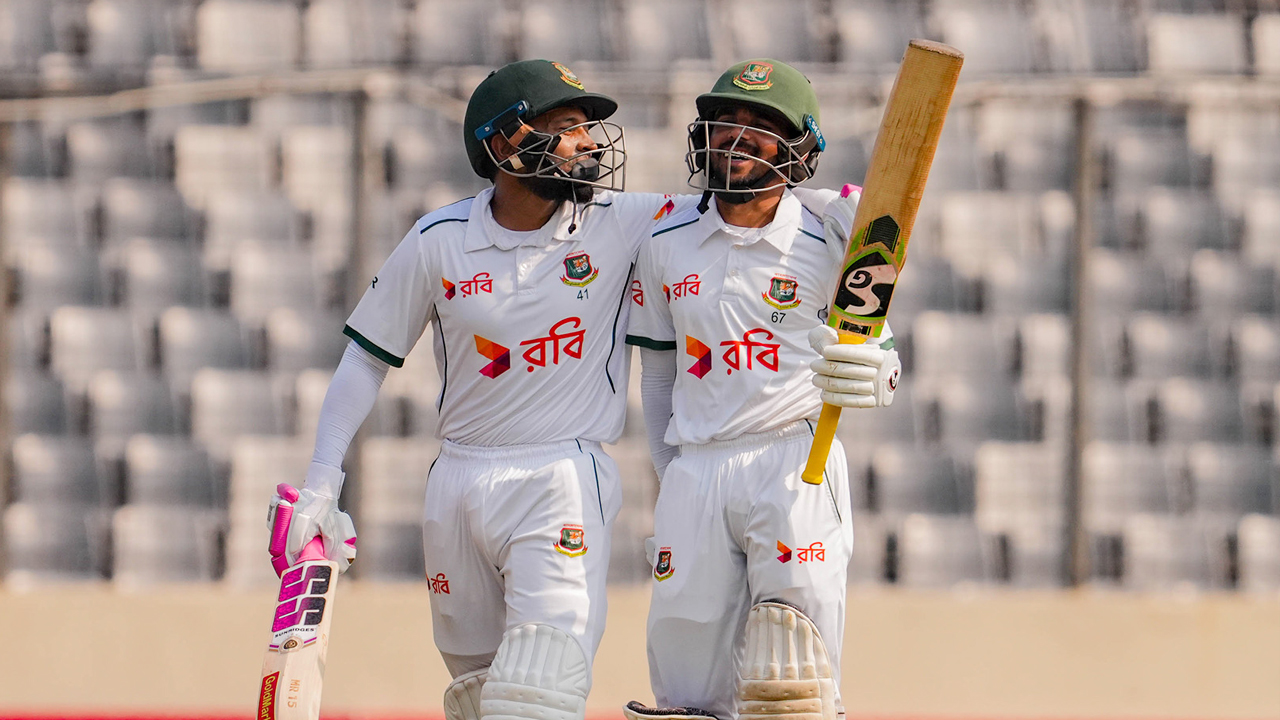 এরপর মুমিনুল-মুশফিক ১৬৭ বলে গড়েন ১২৩ রানের জুটি। দারুণ বোঝাপড়া দ্রুতগতিতে রান তুলেছেন অভিজ্ঞ দুই তারকা। ১১৮ বলে ১০টি চারের সাহায্যে ৮৭ রান করেছেন মুমিনুল। পেয়েছেন টেস্টের ২৫তম হাফসেঞ্চুরি। মুশফিক ২৮তম টেস্ট ফিফটির পর ৮১ বলে ২ চার ও এক ছক্কায় ৫৩ রানে অপরাজিত ছিলেন। প্রথম ইনিংসে সেঞ্চুরি করেই বাংলাদেশের একমাত্র শততম ম্যাচ খেলা এই উইকেটরক্ষক ব্যাটার ইতিহাসে জায়গা করে নেন। দ্বিতীয় ইনিংসে ফিফটির মাধ্যমে মাইলফলক টেস্টকে আরও রাঙালেন মুশফিক।