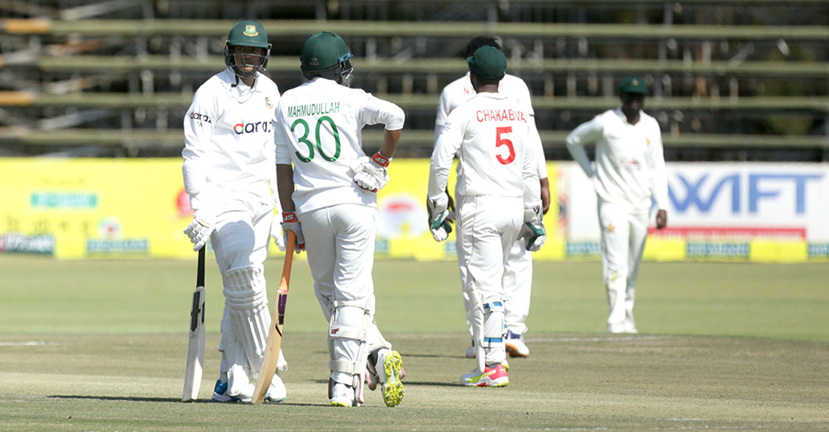 বাংলাদেশ: ৪৬৮/১০, ১২৬ ওভার (মাহমুদউল্লাহ ১৫০*, লিটন ৯৫, তাসকিন ৭৫, মুমিনুল ৭০; মুজারাবানি ৪/৯৪)