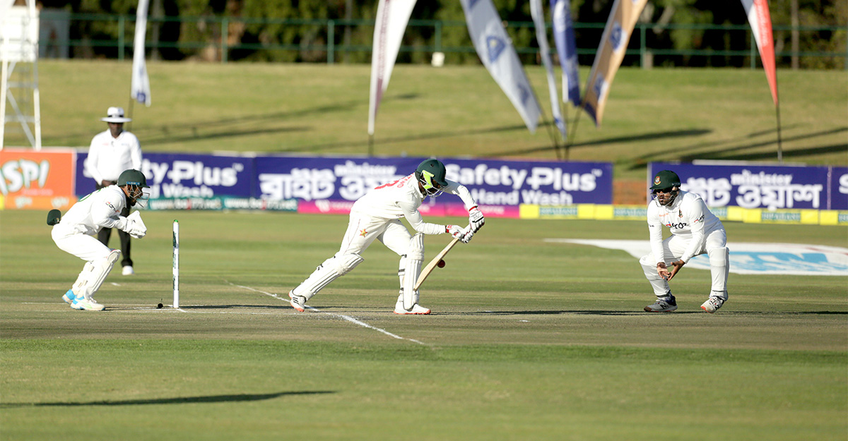 ম্যাচের প্রথম দিনে উইকেটের চরিত্র যেমন ছিল, সেখান থেকে জিম্বাবুয়ের পেসাররা বেশ সাহায্য পেয়েছেন। এর ফায়দা তুলে নিতে ভুল করেননি তারা। টাইগারদের ৮ উইকেট ভাগ করে নেন জিম্বাবুয়ের তিন পেসার। তবে দ্বিতীয় দিনের শুরু থেকে উইকেট ছিল নিষ্প্রাণ। ভূমিকায় বোলার তাসকিন আহমেদ সে সুযোগ কাজে লাগাতে ভুল করেননি। সাত বছরের আন্তর্জাতিক ক্যারিয়ারে প্রথমবারের মতো ফিফটির স্বাদ পান তিনি। মাহমুদউল্লাহ রিয়াদ তো খেলেন ক্যারিয়ার সেরা অপরাজিত ১৫০ রানের ইনিংস।