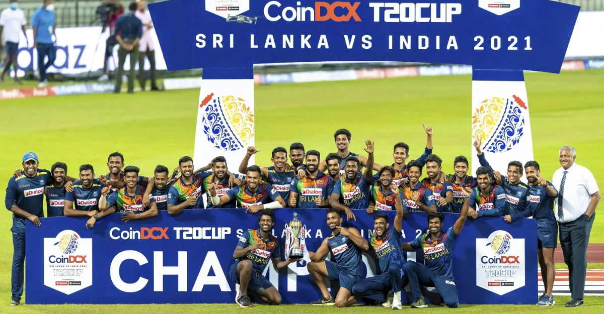 সিরিজ জয়ের ট্রফি হাতে শ্রীলঙ্কা দল/ক্রিকইনফো