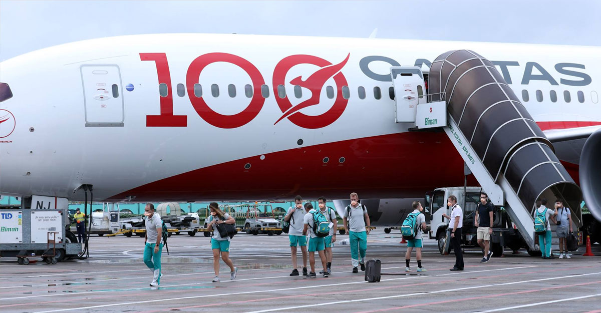 ৯ জুলাই দিবাগত রাত একটায় ভাড়া করা বিশেষ বিমানে করে অস্ট্রেলিয়ার উদ্দেশে যাত্রা করবে অস্ট্রেলিয়া ক্রিকেট দল। এরইমধ্যে হযরত শাহজালাল আন্তর্জাতিক বিমানবন্দরে চলে এসেছে সেই বিমান।